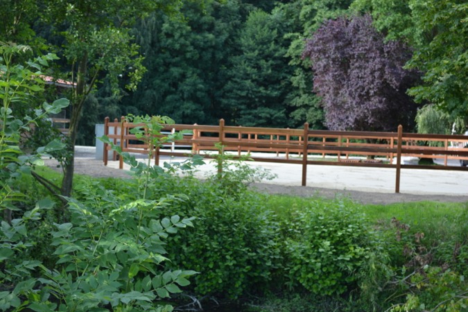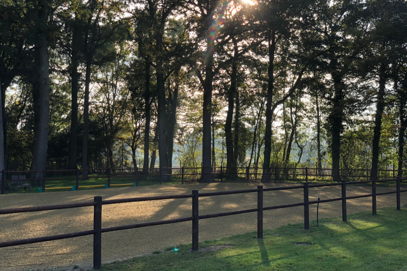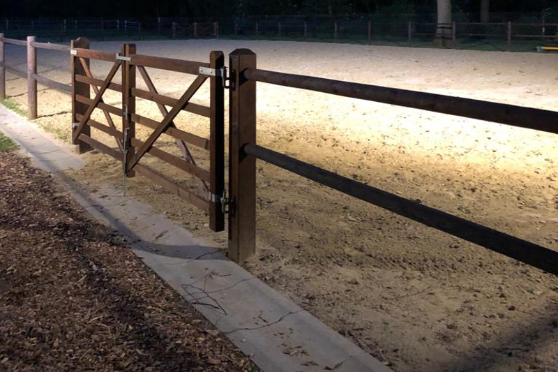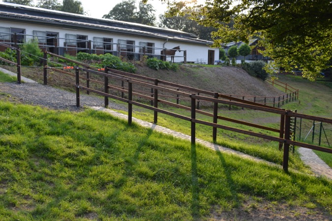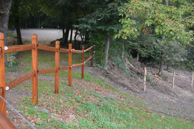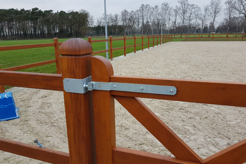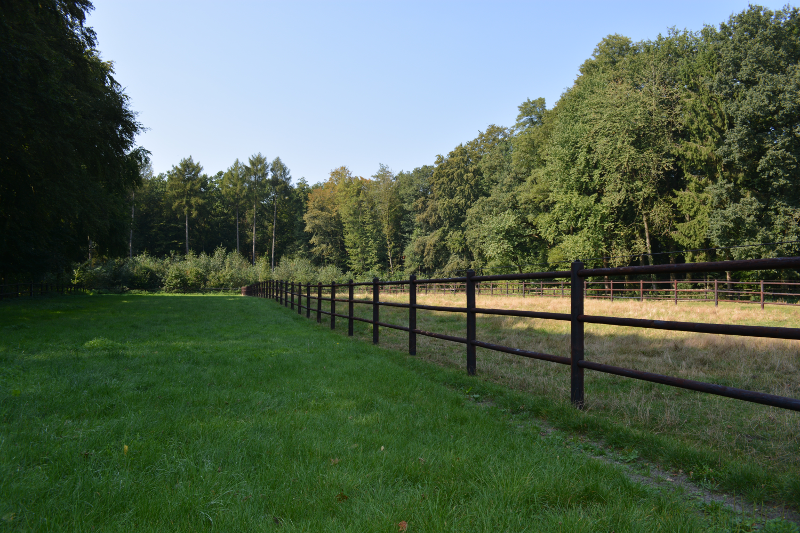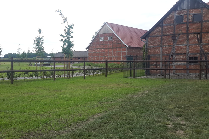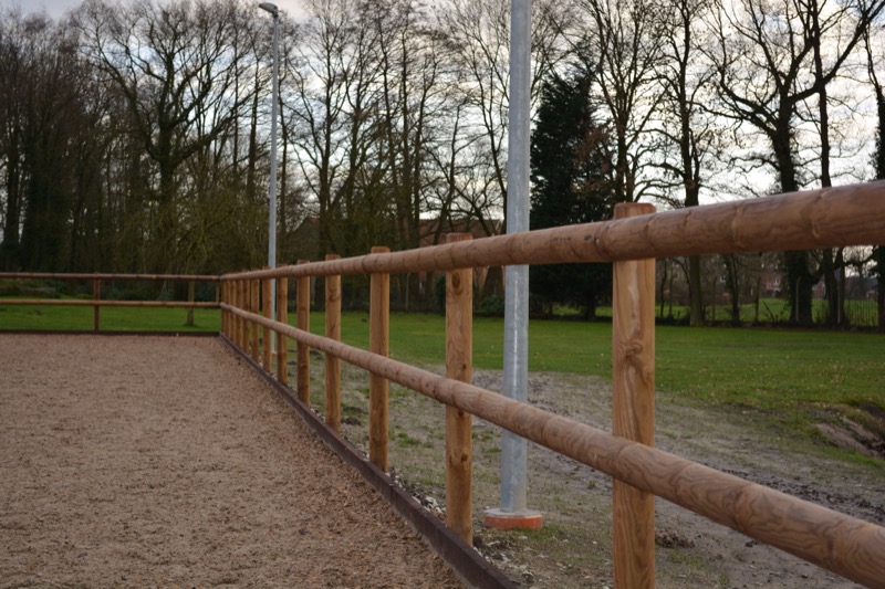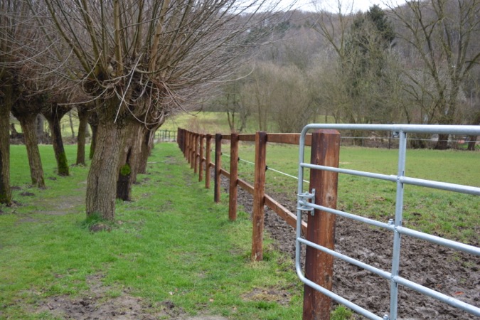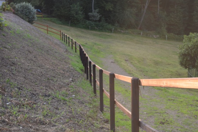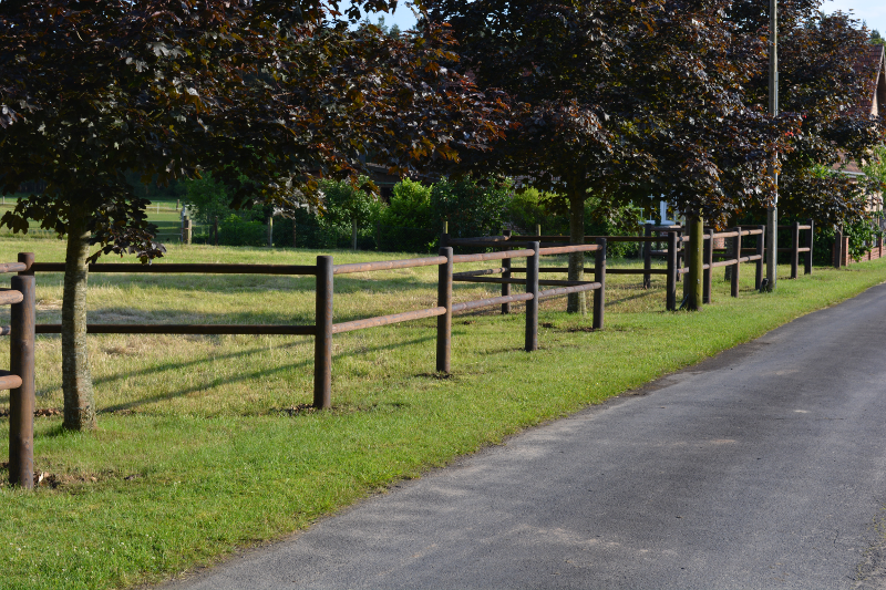 Holzzaun aus qualitativ hochwertiger Kiefer, rund in rund gearbeitet, Riegel werden durch den Pfosten gesteckt und unsichtbar verschraubt.