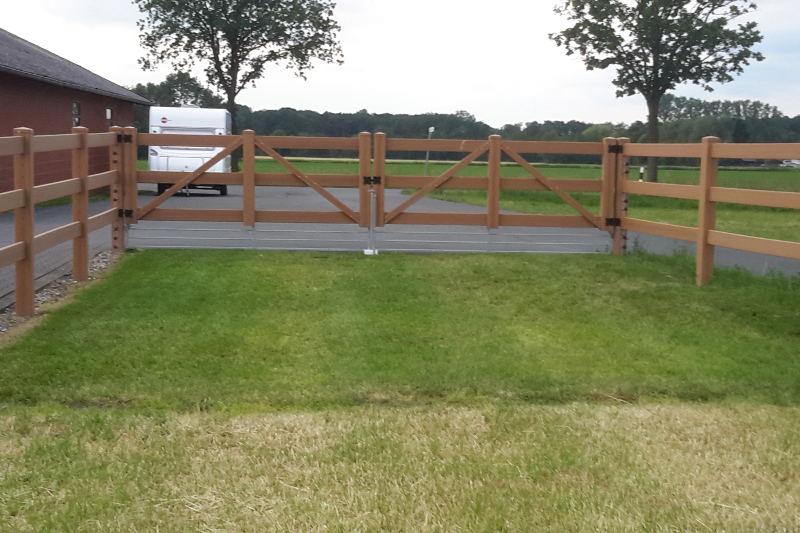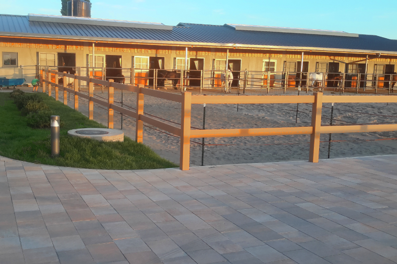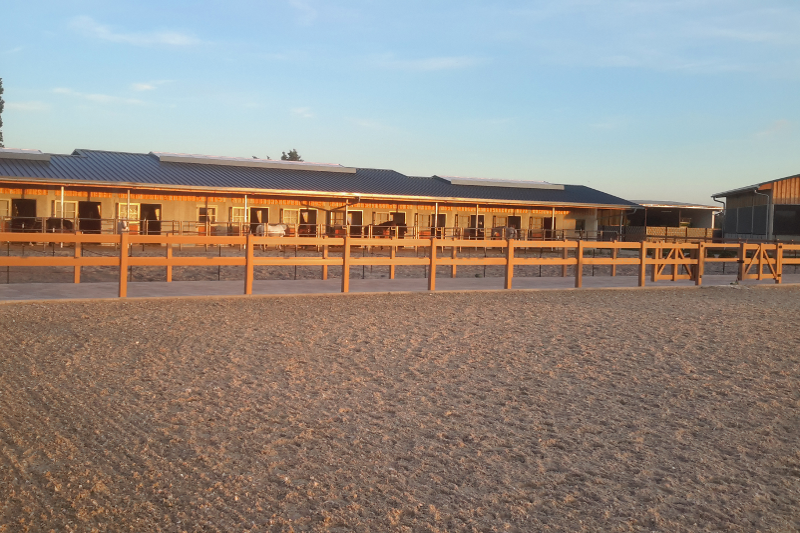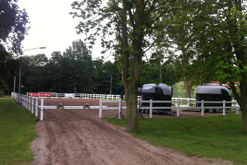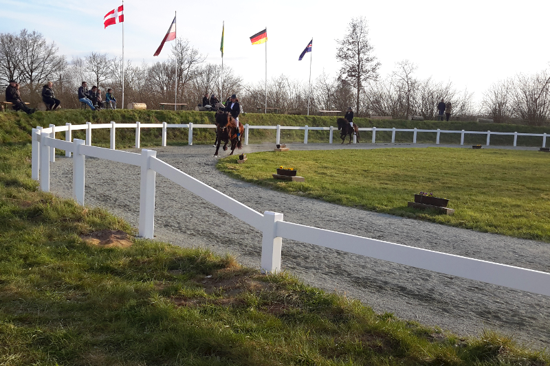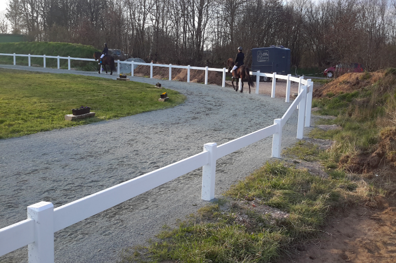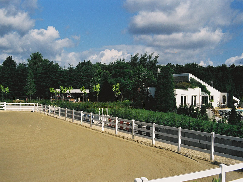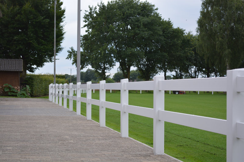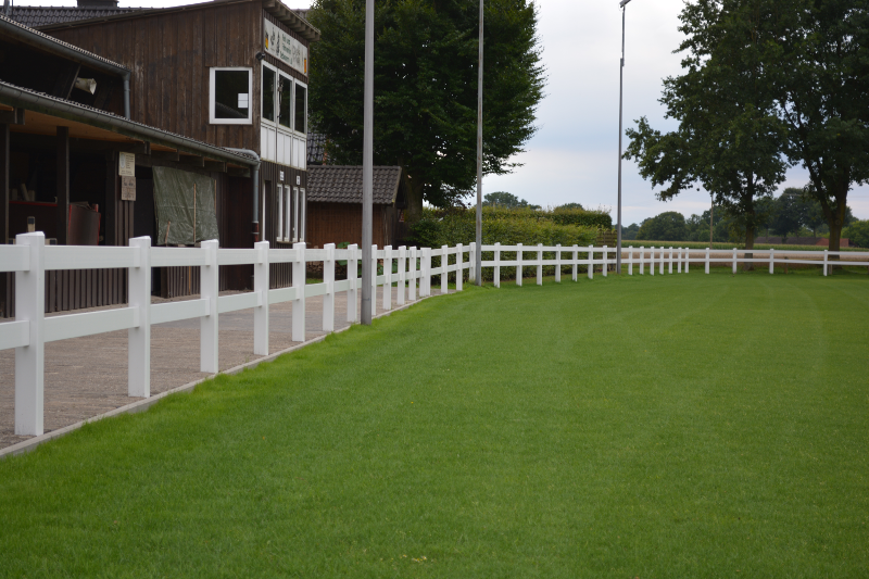 - Einriegeliger Kunststoffzaun der Firma Heritage als Einfassung für Dressurplätze.